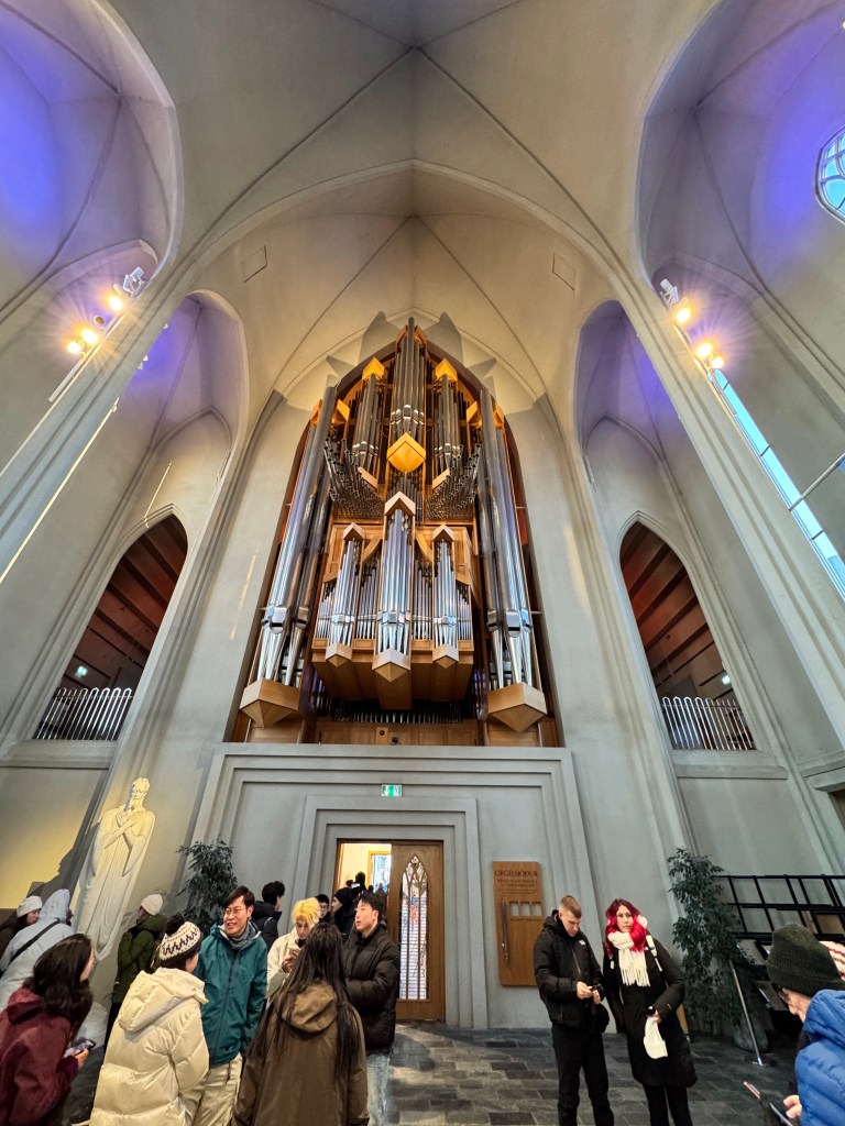 I made my way to Hallgrimskirkja, one of Reykjavik’s most iconic landmarks. The church’s striking architecture and panoramic views from the tower were a great way to end my Icelandic adventure. The line to get to the top was very long and only a few can go up at a time and instead I spent my time looking at the huge organ and beautiful church.